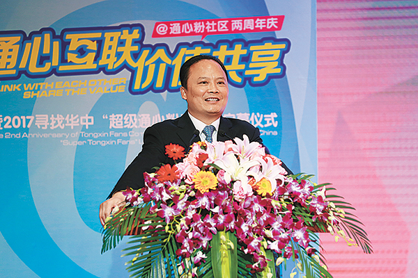 本報訊(記者 唐勝)3月20日,縈繞著歡笑與喜悅,承載著責任與夢想,以“通心互聯,價值共享”為主題的通心粉社區兩周年慶暨2017尋找華中“超級通心粉”活動啟動儀式在通威國際中心隆重舉行。四川省水產局副局長、省水產學會理事長漆乾余,四川省電商協會秘書長徐曄,十一屆全國政協常委、通心粉項目組總指揮、通威集團董事局劉漢元主席,通心粉項目組副總指揮、通威集團禚玉嬌總裁,通威股份嚴虎副董事長,通心粉項目組副總指揮、通威股份郭異忠總裁,通威集團監事會主席陳星宇,通威股份監事會主席晏保全,通威集團副總裁胡榮柱,通心粉項目組執行總指揮、通威集團副總裁黃其剛,通威太陽能(合肥、成都)有限公司董事長謝毅,通威股份董事、永祥股份董事長兼總經理段雍,通威股份副總裁兼華東戰區總裁王尚文,通威股份副總裁兼華中一區總裁沈金竹,通威股份華中二區總裁幸鵬及通威管理總部核心管理層盡數出席。第49屆國際小姐中國區總冠軍、通心粉社區愛心大使王芊,來自美國的“國際通心粉”代表歐陽墨翟,作為特別嘉賓出席慶典。此外,來自全國、省、市的主流及行業媒體代表,2016華東“超級通心粉”代表以及總部員工等近600人出席并見證了通心粉社區發展歷程中又一盛大時刻。