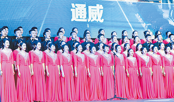 活力無限的街舞,展現了通威人青春洋溢、昂揚向上的精氣神通威員工百人大合唱 《通威之歌》震撼“上映”
