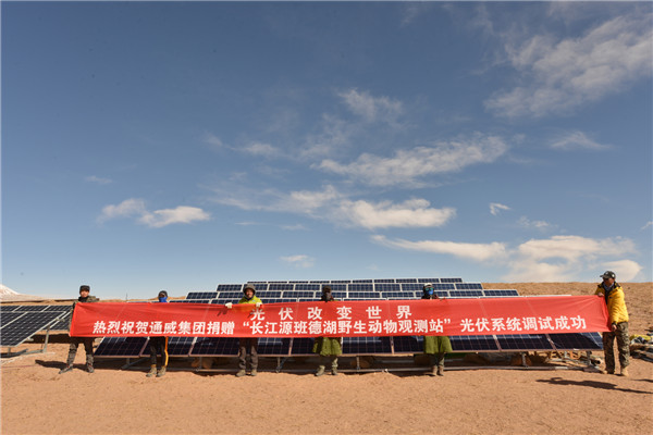 2019年4月10日通威集團(tuán)捐贈(zèng)“長(zhǎng)江源班德湖野生動(dòng)物觀測(cè)站”光伏系統(tǒng)調(diào)試成功