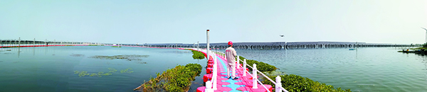 午后,趙振和同事深入光伏區測溫。每天上午運維人員從8點到11點半開展巡檢消缺,夏季中午12點半到13點半測溫,下午巡檢消缺至18點,一天走船6-7公里。