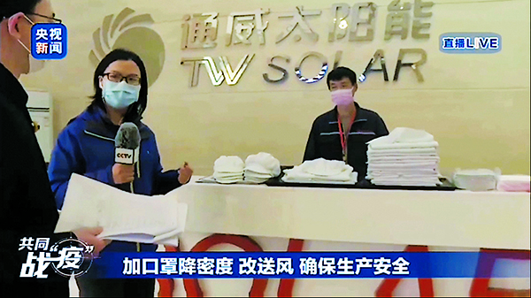央視新聞《共同戰“疫” 》特別欄目記者走進通威太陽能成都基地