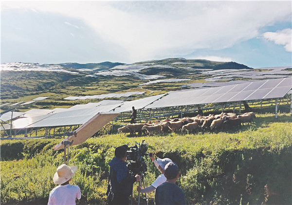 四川電視臺攝制組拍攝通威喜德縣農(nóng)光目光一體光伏扶貧電站項目