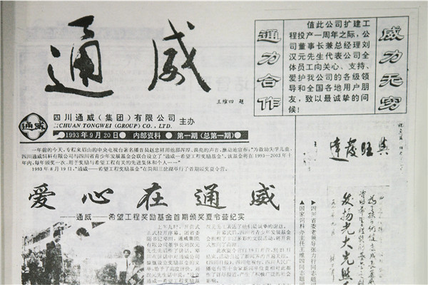 企業文化是用來感染人的,因此,它的傳播與提煉很重要,通威文化需要專門的傳播平臺。在這樣的背景下,90年代初,《通威報》正式創刊,劉漢元主席高度重視并擔任第一任總編。報頭上的“通威”二字由原農業部全國飼料工業辦公室主任、高級經濟師王維四題寫。