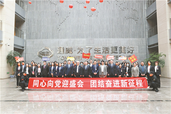 為深入學習貫徹黨的二十大精神,10月26日,通威集團黨委牽頭,街區黨委、樓宇黨委共同參與的“同心向黨迎盛會,團結奮進新征程”主題黨委擴大會議在通威國際中心召開。成都市高新區桂溪街道黨工委書記巫全根,通威集團黨委書記、通威股份董事長、CEO謝毅,成都市高新區桂溪街道月牙湖社區黨委書記、居委會主任陳立容,通威集團黨委副書記、通威國際中心黨委書記、集團副總裁黃其剛,集團黨委紀檢委員、集團紀委書記、聯創街區綜合黨委書記、通威股份監事會主席鄧三,集團黨委統戰委員、通威股份光伏事業部總裁陳星宇出席會議。