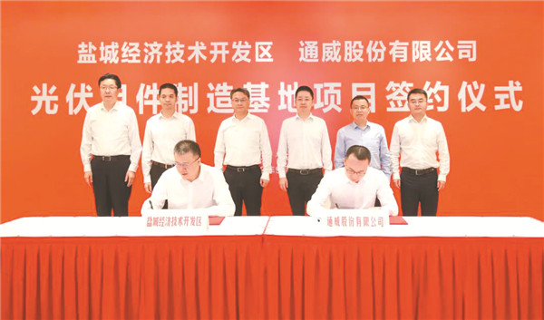 2022年9月29日,通威股份高效光伏組件智造基地項(xiàng)目簽約落戶鹽城