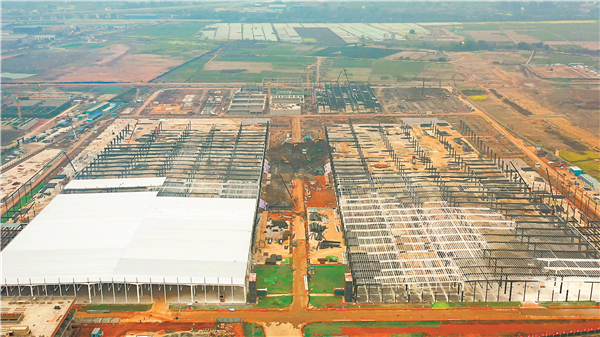 通威太陽能彭山基地一期項目,是通威第六大電池片生產基地。項目用地548.3畝,建設規模236000平方米,主要建設生產廠房、輔助用房及配套設施等,并購置高效晶硅電池智能制造設備(設施),項目建成后形成年產16GW高效晶硅電池生產智能制造工廠。截至目前,彭山基地地下基礎工程完成100%,主體鋼結構安裝完成約80%,四月即將迎來施工高峰,現場將有2500余人同時作業。