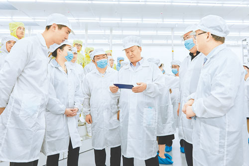 6月6日,通威全球創新研發中心首片電池順利下線,標志著中心建設取得了突破性進展。全國人大代表、全國工商聯副主席、通威集團董事局劉漢元主席出席儀式,通威集團禚玉嬌總裁,通威股份董事長、CEO劉舒琪陪同出席。通威股份總裁助理、通威太陽能科技有限公司總經理蕭圣義,通威股份光伏首席技術官邢國強,通威太陽能總經理周華等領導以及光伏技術部核心骨干代表、通威太陽能管理團隊代表共同見證了這一歷史性時刻。