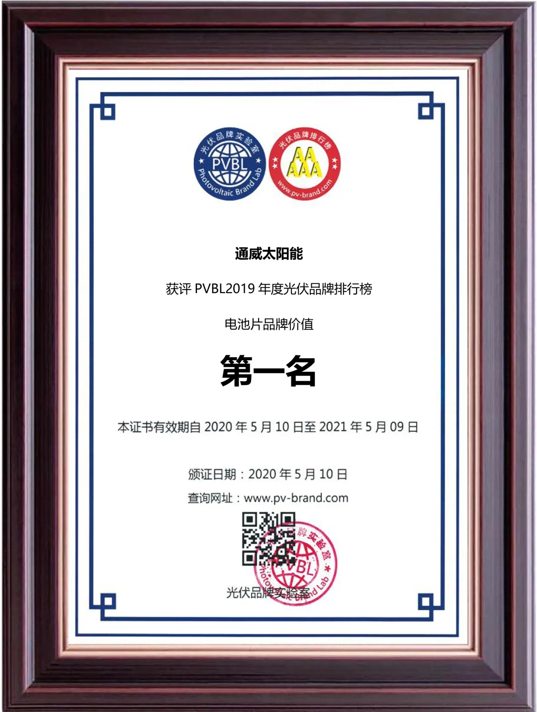 通威太陽能榮登“PVBL2019光伏品牌排行榜” 電池片排行榜榜首