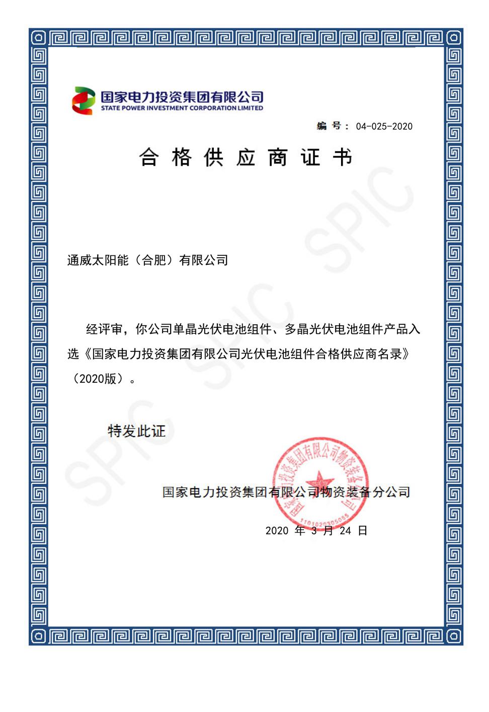通威太陽能合肥公司成功入選國家電投光伏電池組件合格供應商名錄