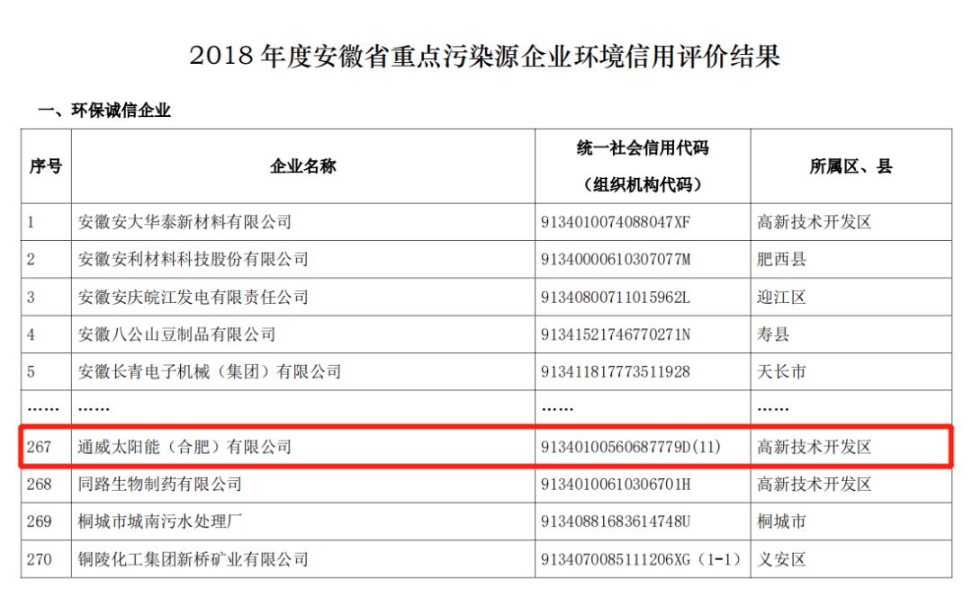 通威太陽能合肥公司獲評“安徽省環保誠信企業”榮譽稱號