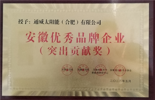 通威太陽能(合肥)有限公司榮獲安徽優秀品牌企業“突出貢獻獎”
