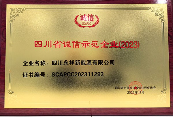 永祥新能源獲2023年“四川省誠信示范企業(yè)”榮譽