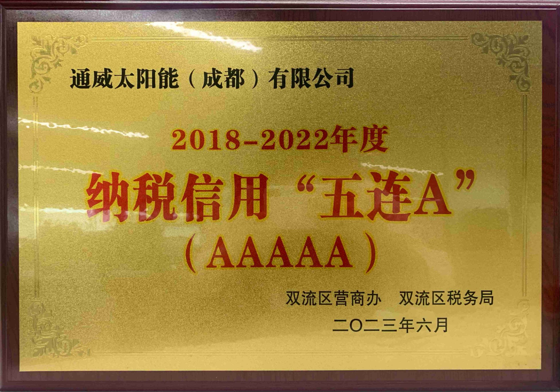 通威太陽能雙流基地連續(xù)八年榮膺“A級(jí)納稅人”稱號(hào)