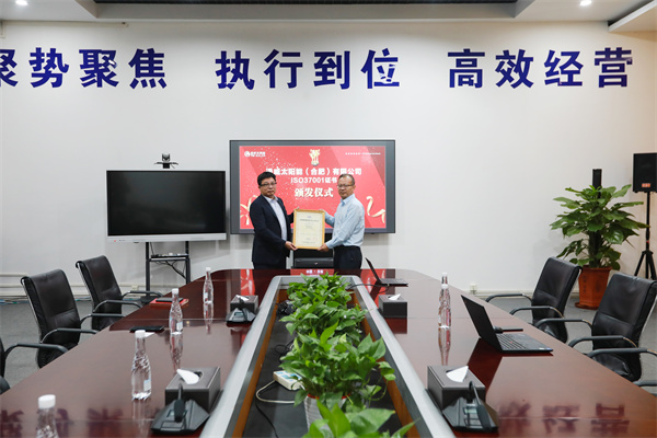 通威太陽能(合肥)有限公司榮獲ISO37001反賄賂管理體系認證證書