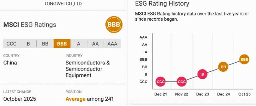 連續(xù)三年穩(wěn)步進(jìn)階:通威MSCI ESG評(píng)級(jí)躍升至BBB