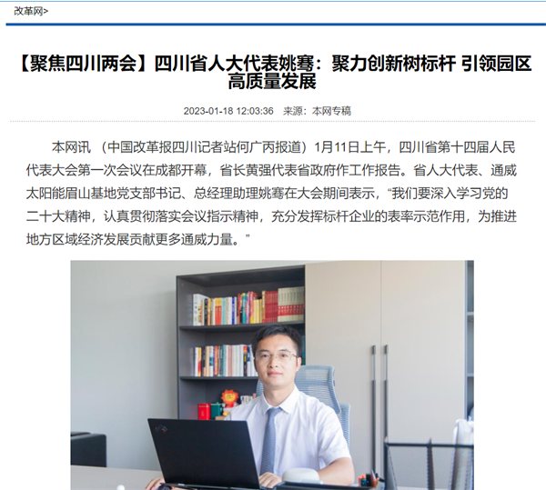 《中國改革報》聚焦四川省人大代表姚騫:帶領通威太陽能眉山基地實現高質量發展