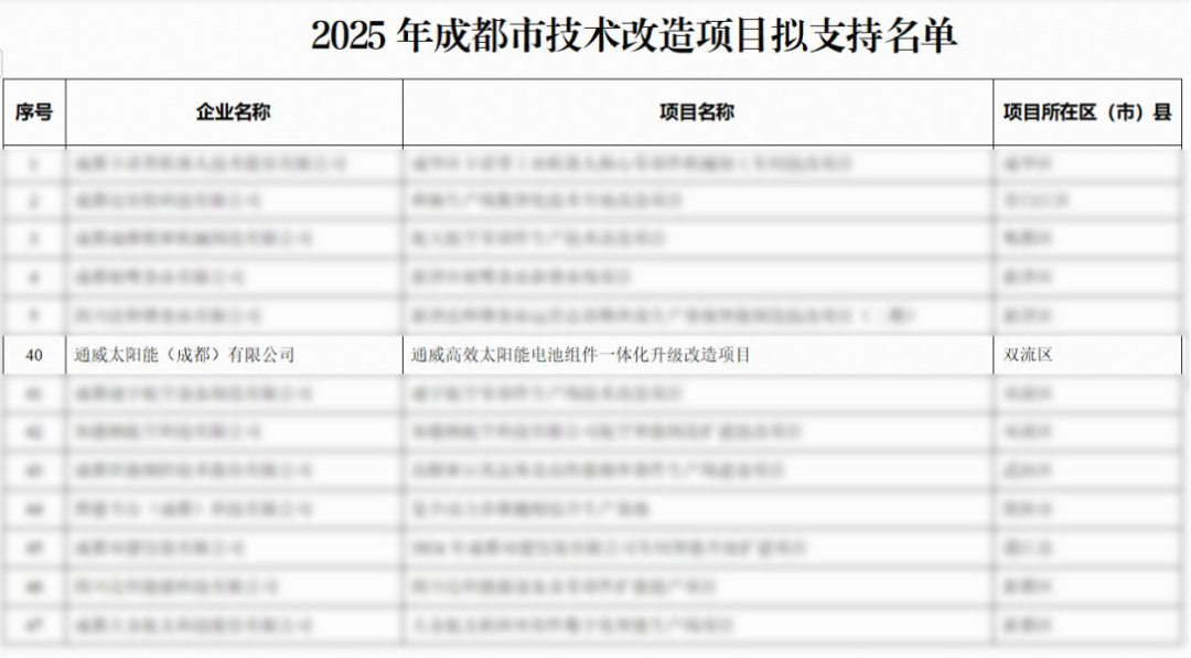 通威太陽能成都公司成功入選成都市技術改造項目擬支持名單