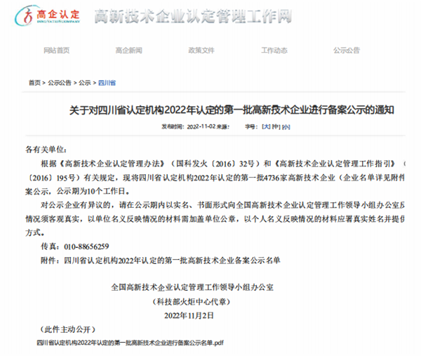 通威太陽能眉山基地榮列“高新技術企業”公示名單