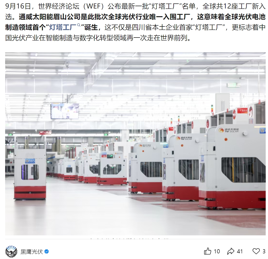 通威太陽能榮膺全球光伏電池制造領(lǐng)域首個(gè)“燈塔工廠” 引媒體齊聚焦