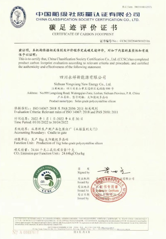 行業(yè)新刻度!永祥高純晶硅獲權威碳足跡認證