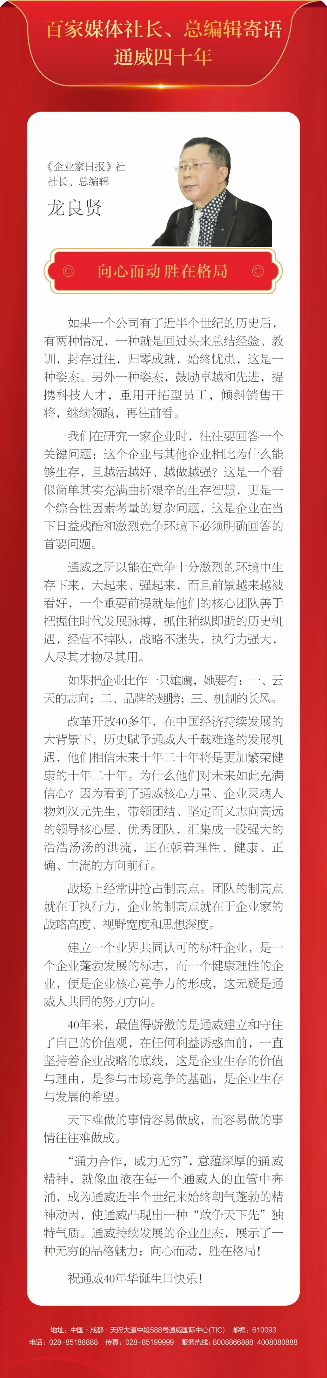 百家媒體社長、總編輯寄語通威四十年丨向心而動 勝在格局