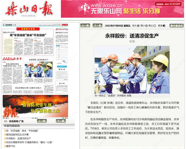 《樂山日報》等四家媒體聚焦永祥送清涼促生產(chǎn)活動