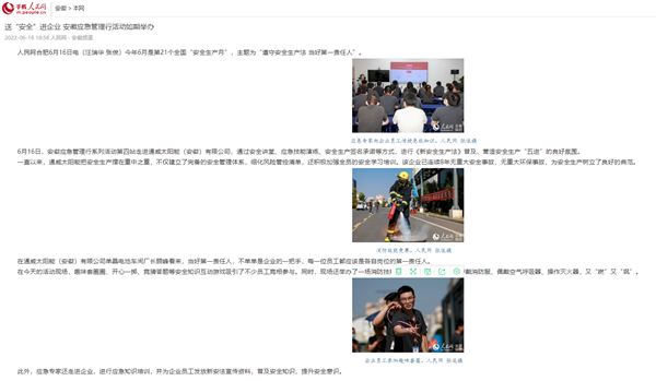 人民網、安徽交通廣播、金臺資訊聚焦通威太陽能合肥基地高質落實安全生產責任