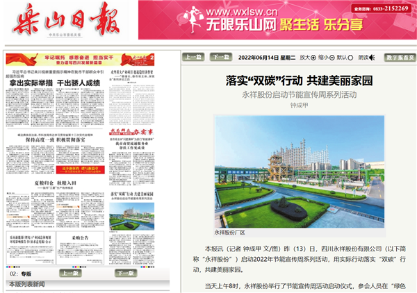 樂(lè)山市主流媒體聚焦報(bào)道永祥股份節(jié)能宣傳周活動(dòng)
