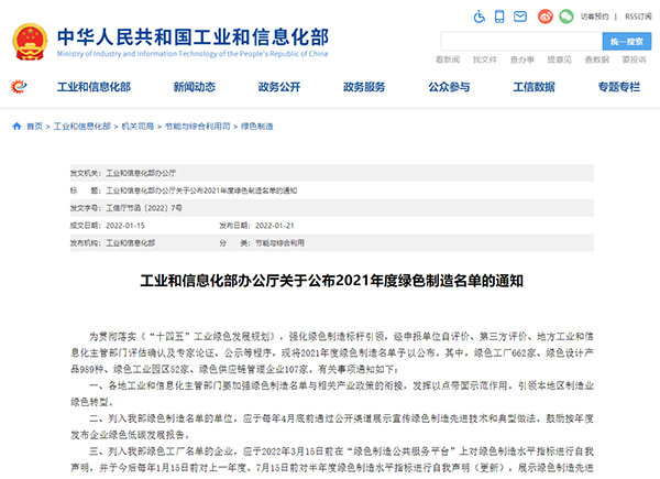 永祥新材料榮獲國家級“綠色工廠”榮譽