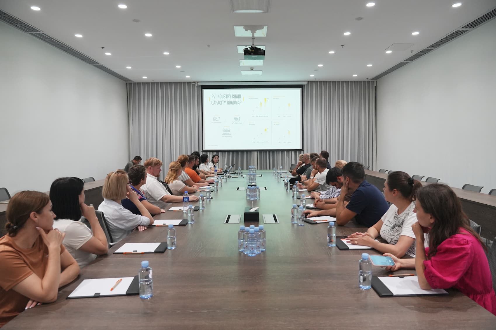 7月23日,摩爾多瓦政府辦公廳、能源部、國家可持續能源中心、電力公司等組成的新能源建設研修班一行30余人蒞臨通威太陽能(金堂)有限公司參觀交流,金堂公司人力資源部、質量部、行政部相關負責人陪同接待。