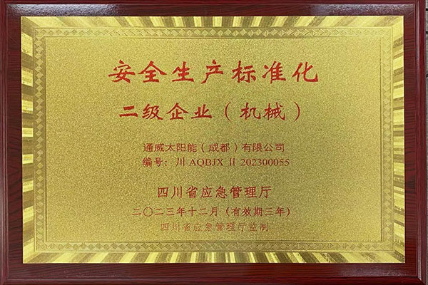通威太陽(yáng)能雙流基地順利通過(guò)四川省安全生產(chǎn)標(biāo)準(zhǔn)化二級(jí)企業(yè)復(fù)審