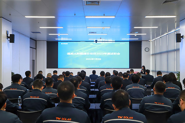 砥礪奮進(jìn)創(chuàng)佳績,戮力同心續(xù)華章,1月9日,通威太陽能通合項目順利召開2023年度中干述職會議,通威太陽能總經(jīng)理周華、副總經(jīng)理宋梟、總經(jīng)理助理陳君,通合新能源總經(jīng)理助理羅曉云、郭寬新及各部門負(fù)責(zé)人及核心骨干代表出席本次會議。
