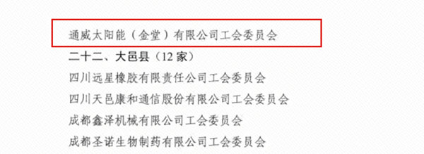 近日,成都市總工會公布了《2023年四、五星級企事業(yè)單位工會及四、五級鎮(zhèn)(街道)、產(chǎn)業(yè)園區(qū)工會名單》,通威太陽能金堂基地工會委員會獲評“2023年成都市四星級工會”。