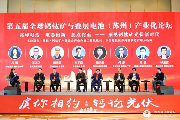 龍巍博士參加論壇“破卷出新,拐點將至—預見鈣礦光伏新時代”高峰對話,和與會嘉賓共同探討疊層電池產業化技術路徑及挑戰。張一峰博士在論壇作主旨演講,向全行業分享通威在疊層電池領域的研究進展,備受關注。