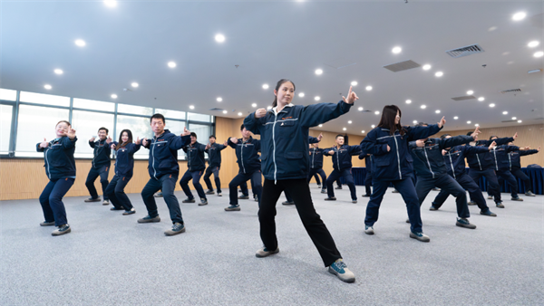 八段錦是一套獨立而完整的健身法,起源于北宋,現代的八段錦經過改良更加符合人體生理特點,練習無需器械,不受場地局限,簡單易學。組件各基地參與員工在領隊的指導下進行練習,認真學習動作要領,互相交流,現場氣氛熱烈。練習的動作包括站樁式、兩手抱球、推掌等,每一個動作都充分舒展筋骨,在寒冷的天氣中健身、暖身,提升了每個人的精氣神。