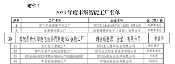 近日,成都市經(jīng)濟(jì)和信息化局公布了《2023年度市級智能工廠和市級數(shù)字化車間認(rèn)定名單的通知》,共有35家智能工廠,73家數(shù)字化車間獲得認(rèn)定,其中通合新能源被評為2023年度“成都市智能工廠”。