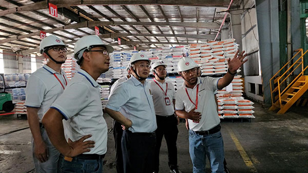 11月27日,通威股份農牧總裁、通威農發總經理郭異忠蒞臨越南天邦公司檢查指導工作。越南天邦公司總經理劉彥帶領公司干部和骨干員工團隊全程陪同。