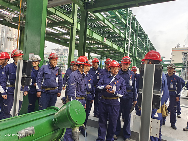 圍繞公司“高效經營,執行到位”的經營管理思路,深入踐行“安全穩定,改善提升,團隊建設”三大主題,11月17日,通威股份副總裁、永祥股份總經理李斌,永祥股份副總經理、永祥新能源常務副總經理羅周,永祥股份安全環??偙O楊武明等公司管理干部對永祥新能源精餾二工段進行現場安全檢查,工段管理人員全員參與。