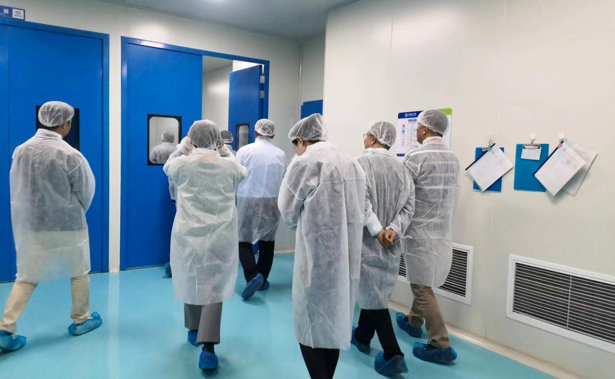 李清總工一行參觀三新藥業(yè)GMP車間,了解公司目前擁有通過新版獸藥GMP認證的3個現(xiàn)代化車間、4條工藝先進的生產(chǎn)線,詢問了設備運用、生產(chǎn)工藝、質(zhì)量管理等方面情況。