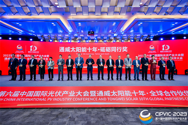 11月13日,2023第六屆中國國際光伏產(chǎn)業(yè)大會(huì)暨通威太陽能十年·全球合作伙伴大會(huì)在成都隆重舉行。今年是通威太陽能創(chuàng)立的第十年,通威太陽能穩(wěn)健快速發(fā)展的背后,離不開各級(jí)政府、合作伙伴和社會(huì)各界的關(guān)心與支持。大會(huì)以“筑夢(mèng)雙碳 智創(chuàng)未來”為主題,在這場(chǎng)全球光伏盛會(huì)上,光伏行業(yè)大咖、頂級(jí)專家、全球光伏企業(yè)精英齊聚蓉城,共同探討行業(yè)前沿技術(shù),洞見光伏發(fā)展未來。
