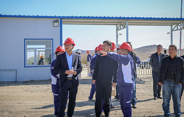 在項目施工現(xiàn)場,劉永明主任一行對綠色基材的工程進(jìn)度進(jìn)行了全面了解,詳細(xì)詢問了項目推進(jìn)中遇到的問題,并現(xiàn)場進(jìn)行安排部署。杜亦軍總一一回答劉永明主任關(guān)心的問題,表示內(nèi)蒙古通威綠材項目的順利推進(jìn)離不開各級黨委政府長期的關(guān)心和支持,為項目的順利推進(jìn)提供了堅實的保障;達(dá)茂旗工業(yè)硅項目將繼續(xù)深耕綠色發(fā)展,為打造“世界綠色硅都”注入新動能,為地方經(jīng)濟(jì)發(fā)展做出貢獻(xiàn)。