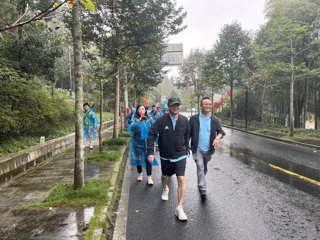 6日清晨,開營儀式在齊唱國歌,迎國旗中拉開序幕,大家以昂揚的斗志、蓄勢待發的精氣神準備開啟15公里重走紅軍路徒步之旅。華中一區總經理鄧金雁為開營儀式講話,他指出:大家要堅定信念,堅定信心,敢打勝仗、硬仗,目前我們正處于營銷轉型的關鍵時刻,大家要結合戰秋冬的工作規劃及目標,以星星之火可以燎原之勢,最終取得新的勝利!隨后,在鄧總的一聲“出發!”令下,大家氣勢沖沖向15公里徒步進發。大家穿過一道道山路,聆聽著紅軍長征故事,切身體驗當年紅軍的長征生活。各位市場精英們互相打氣,成群結隊,大家團結一致,互幫互助,充分展現了通威人勇敢堅毅,奮發向上的精神面貌,雖天降小雨,但依舊抵擋不住市場精英們的腳步。在經過3個多小時的徒步中,全體人員全員到達終點,最終取得了井岡山的勝利,順利會師!