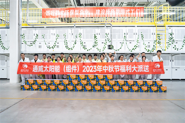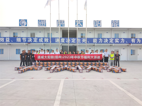 隨著中秋佳節(jié)的臨近,為了感謝員工們的辛勤付出,讓大家在節(jié)日里感受到公司的關(guān)懷和溫暖,9月26日,通威太陽能(組件)各基地先后開展了中秋福利派送活動(dòng)。