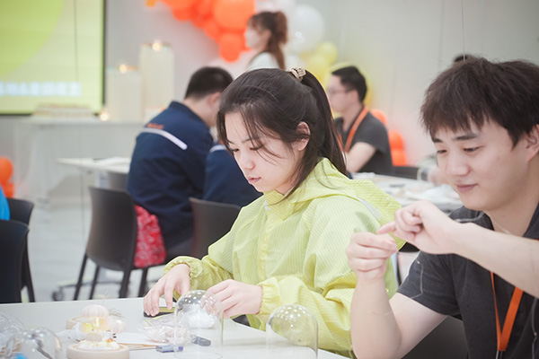 本次生日會(huì)主題為“海膽小夜燈DIY”“陽光戳戳樂”。海膽,孕育于深不可測(cè)的大海,一身鋒芒,難以靠近。而燈,象征著希望和光明,溫暖明亮,愛意融融,看似毫不相關(guān)的兩者,通過溫潤(rùn)的木頭結(jié)合在一起,卻帶給我們一個(gè)靜謐而平和的世界。壽星們通過各自的巧手將海膽、貝殼、珍珠、燈帶等進(jìn)行自制搭配,每個(gè)人都制作出了獨(dú)一無二的小夜燈,為自己送上了最好的禮物;以針為筆,用線織夢(mèng),感受傳統(tǒng)民俗的魅力。小小的戳針遇上了壽星們靈巧的雙手和獨(dú)特的思維創(chuàng)意,發(fā)生了一場(chǎng)色彩與藝術(shù)的碰撞。隨后,壽星們分享蛋糕、同唱生日歌,在歡聲笑語中落下了本次活動(dòng)的帷幕。