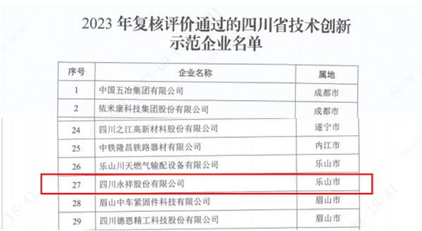 近日,四川省經(jīng)濟(jì)和信息化廳公布了2023年省技術(shù)創(chuàng)新示范企業(yè)認(rèn)定及復(fù)核通過名單,四川永祥股份有限公司順利通過“2023年省技術(shù)創(chuàng)新示范企業(yè)”復(fù)核。