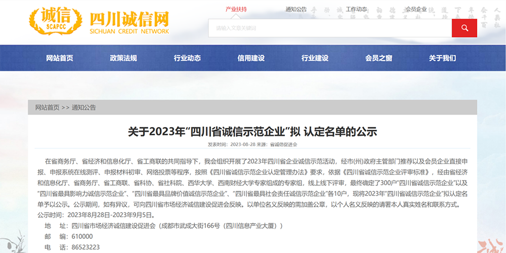 2023年四川省企業誠信示范活動是由四川省市場經濟誠信建設促進會組織牽頭,省商務廳、省經濟和信息化廳、省工商聯共同指導下開展的評選活動,旨在進一步提振消費信心,以企業誠信建設提供高質量市場供給,建設高標準市場體系,增強我省企業誠信經營意識,激發企業誠信建設內生動力,樹立和宣傳我省企業誠信典型。經市(州)政府主管部門推薦以及會員企業直接申報、申報系統在線測評、申報材料初審、網絡投票等程序,由省經濟和信息化廳、省商務廳、省工商聯、省科協、省社科院、西華大學、西南財經大學專家組成的專家組,線上線下評審,最終確定了300戶“四川省誠信示范企業”以及“四川省最具影響力誠信示范企業”“四川省最具品牌價值誠信示范企業”“四川省最具社會責任誠信示范企業”各10戶,此次,通威太陽能三家公司成功入列公示名單,是對公司一直以來“誠信經營、誠信示范”的肯定。