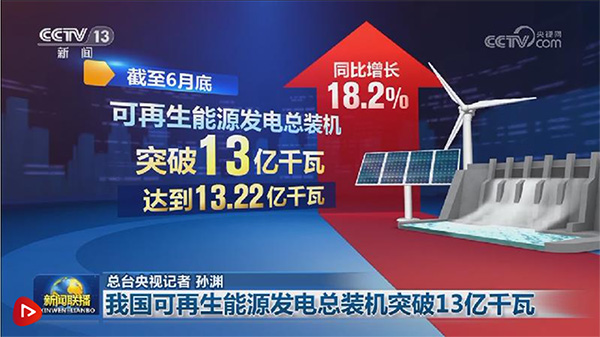 新聞聯播報道—我國可再生能源發電總裝機突破13億千瓦