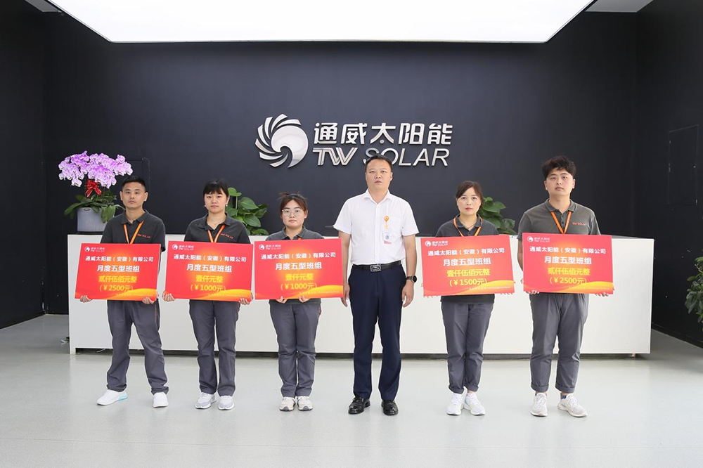 為全面提升一線班組的凝聚力、戰(zhàn)斗力,建設技能型、效益型、管理型、創(chuàng)新型、和諧型的五型太陽能制造團隊,同時為培養(yǎng)標桿,樹立典范,激勵全體班組不斷進步、不斷超越,持續(xù)營造比、學、趕、幫、超的良好團隊氛圍。8月,通威太陽能順利開展7月月度五型班組表彰活動,通威太陽能各基地負責人出席頒獎活動分別為各優(yōu)秀班組頒發(fā)榮譽。