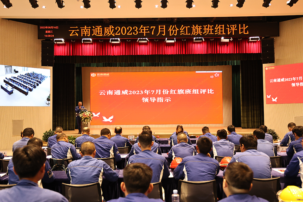 8月16日,云南通威召開(kāi)7月份紅旗班組評(píng)比會(huì)。永祥股份副總經(jīng)理、云南通威總經(jīng)理杜炳勝,云南通威副總經(jīng)理汪云清及相關(guān)部門(mén)負(fù)責(zé)人出席活動(dòng)并擔(dān)任評(píng)委,班組成員及各工段管理干部參加會(huì)議。