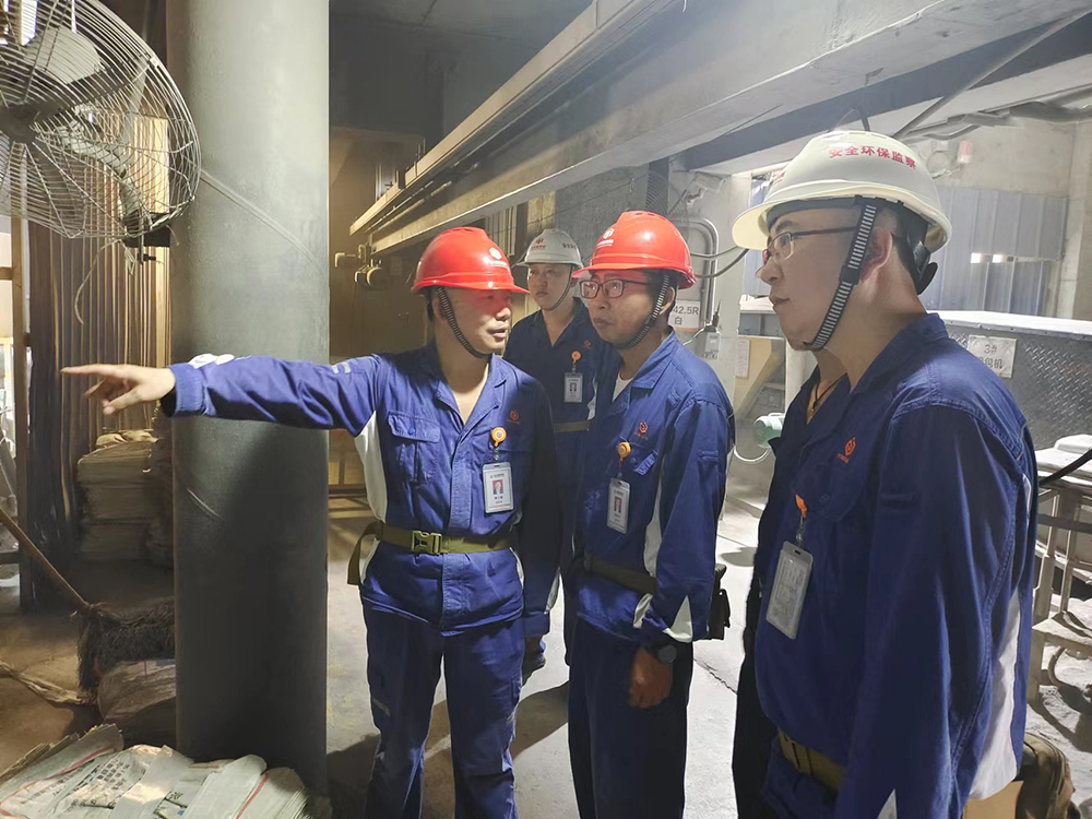 廖總一行先后前往成品配料庫、包裝車間、預拌車間等區(qū)域,重點檢查高溫區(qū)域防火情況、人員防暑情況,對檢查出的偏差項按四定原則進行整改。